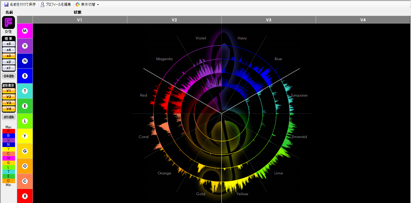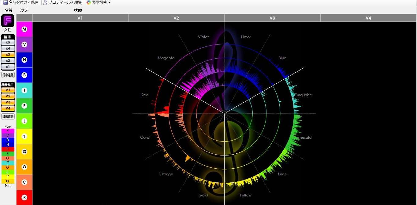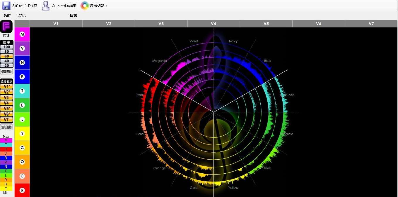 人体の各部はある一定の周波数を持っており、実際に様々な周波数が発せられていると言われています。声分析ソフトヴォイススキャン®を使用することで声からその周波数を分析し、12色のカラーグラフから心のバランスを視覚的に捉えることができます。