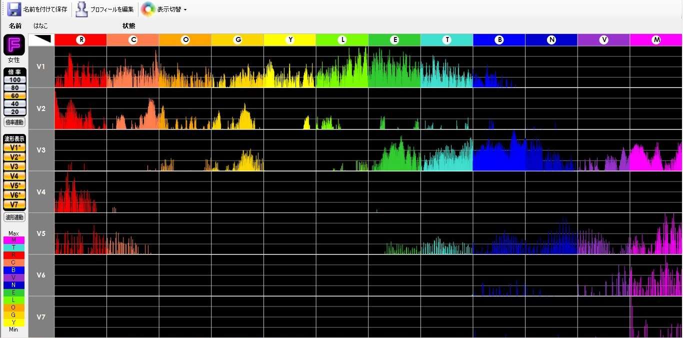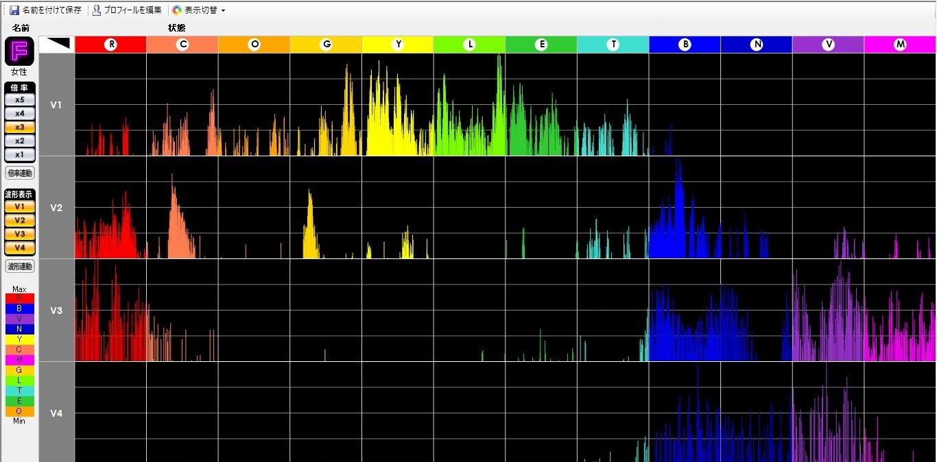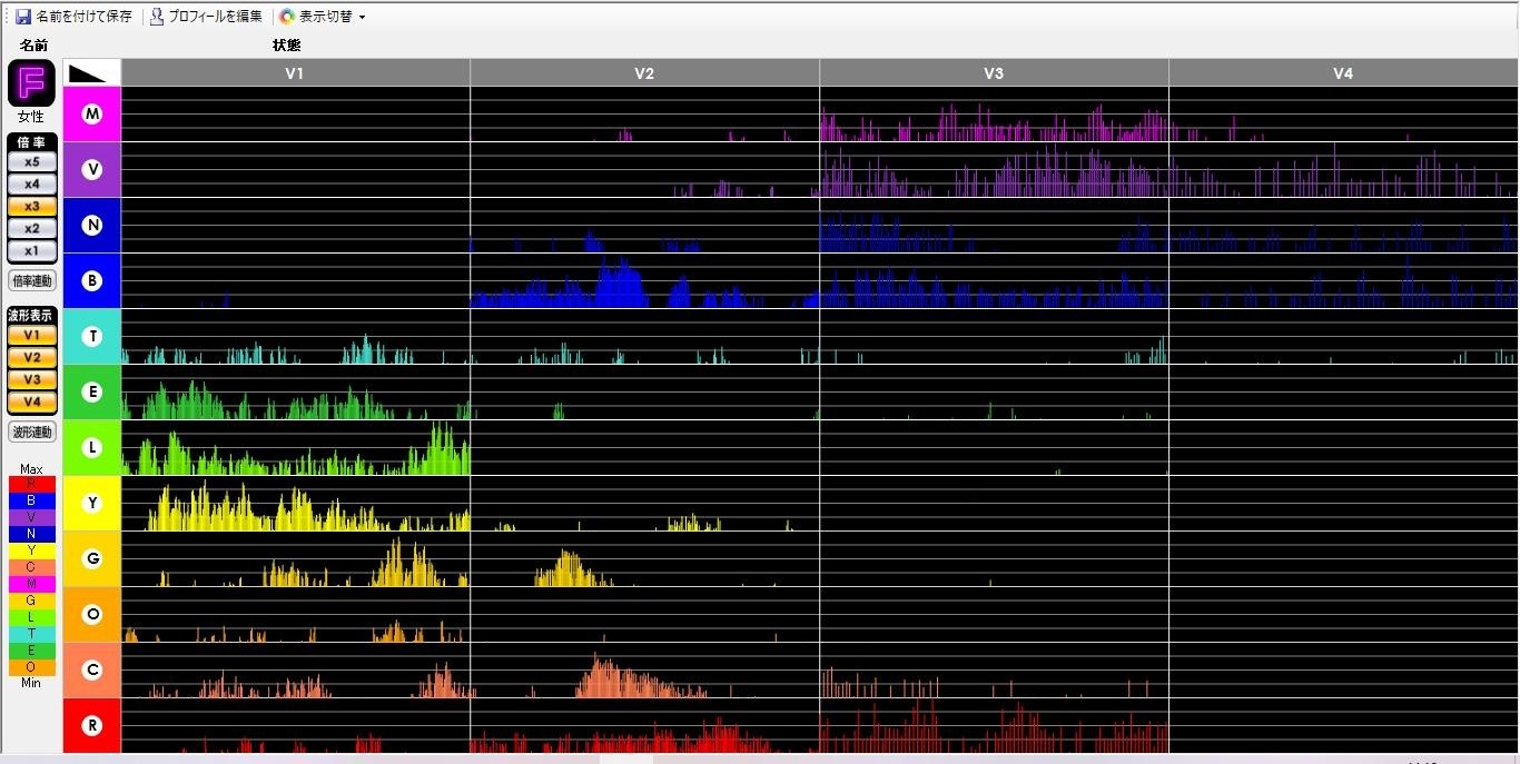 ヴォイススキャン®の分析結果がカラーグラフの波形で表示しカウンセリングでのお互いのイメージを助けるので、言葉の意味の誤解を少なくする事にもつながります